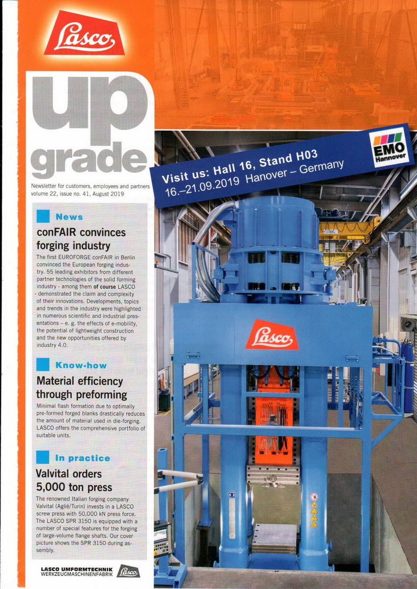 LASCO公司是液壓動力應用于鍛造行業的領頭兵,其生產的各種液壓機可以實現各種鍛造和沖壓成形。生產的電鐓設備已處于世界一流。
