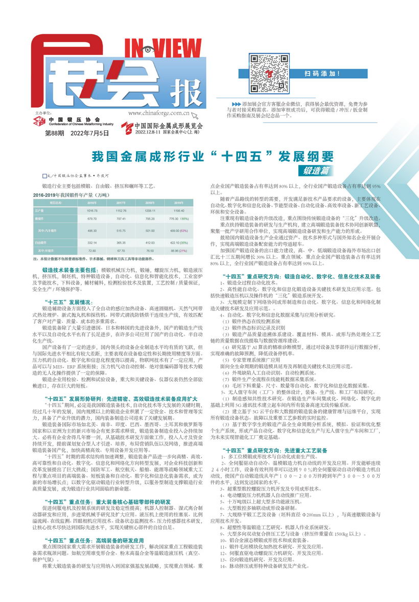 中國國際金屬成形展覽會,由中國鍛壓協會始創于1990年的北京鍛造展和金屬零部件博覽會,與創辦于2004年的上海沖壓展和鈑金展,于2007年在北京合并而成。其中,鍛造展是世界唯一單獨舉辦的專業展覽會,展示規模和水平很高;沖壓和鈑金制作展,是世界七大同類專業名展之一,是國內唯一的全國性沖壓和鈑金加工專業展!