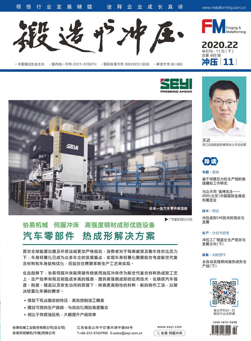 FM《鍛造與沖壓》由中國鍛壓協會主辦,是一本以市場需求為導向,集信息、技術、產品、市場與管理為一體的綜合性高端雜志。月發行量2.5萬冊,采取B2B發行模式,具有鍛壓行業針對性最強、覆蓋有效率最高的讀者群體,是中國鍛壓行業的領銜雜志媒體,受到國內外廣泛的認可。