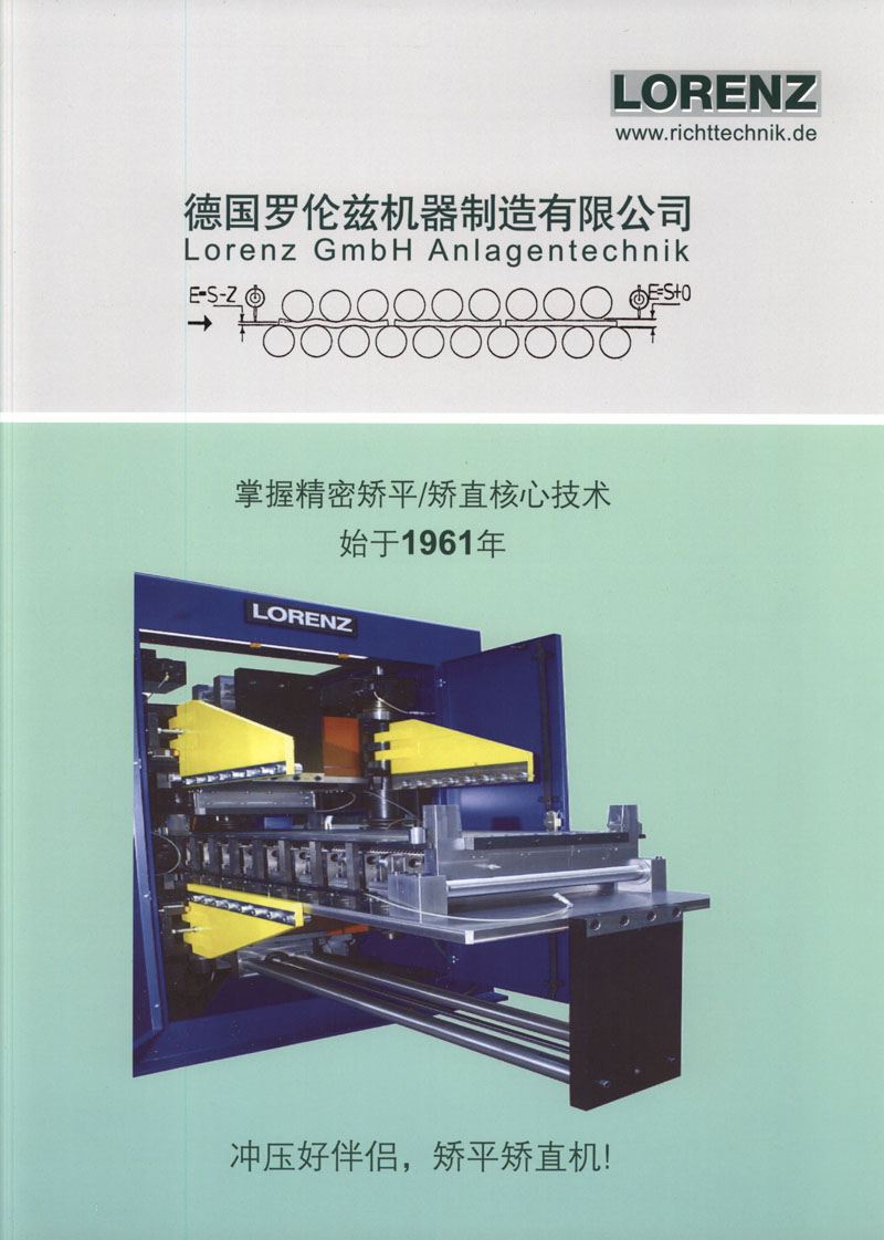 德國羅倫茲機器制造有限公司由H. Lorenz先生于1988年1月1日創立,專業生產19/21輥精密矯平設備, 9輥矯直裝置, 開卷機和收卷機, 電動輥喂料器和橫向零件進給裝置. 所有設備所需電氣,氣動和液壓控制裝置也有我們自己的特點. 我司是矯平矯直技術的創始人。